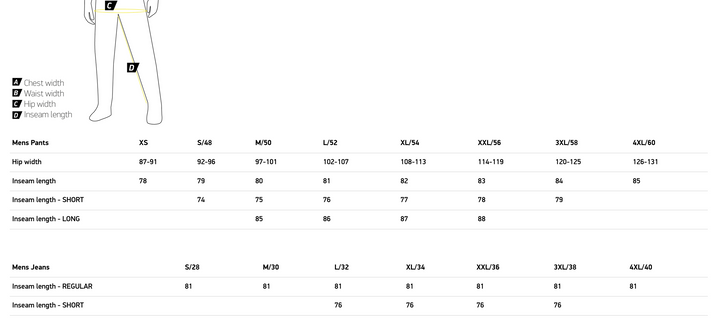 Schutz: Aramidverstärkung an Hüften, Knien und Rücken. Einstellbare CE -Stufe 1 Knieschutz. CE -Stufe 1 Hüftschutz vorbereitet.
