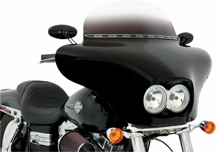Möchten Sie Ihrem hohen klassischen "Bagger" -Sook geben und ein Touring-Modell benötigen? Memphis Shades Batwing ist die Lösung. Das reine, aerodynamische Design vermittelt nicht nur einen schwierigen Eindruck, sondern auch einen besseren Windschutz bei Geschwindigkeit. Ideal für Harley-Davidson Fat Bob und viele andere Modelle.