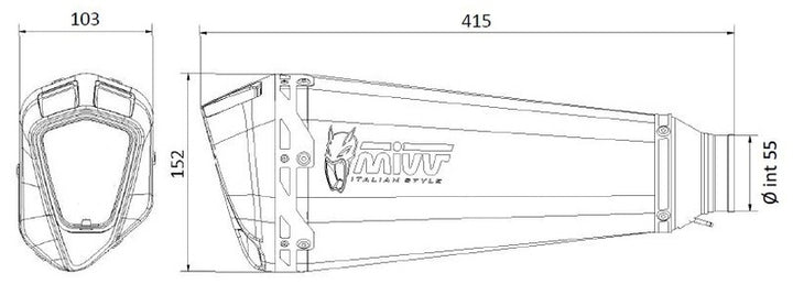 MIVV Delta Race Universal Muffler Black Satinless Stahl / Kohlenstoff - rechte Seite 00.73.KU.M.Sdrb
