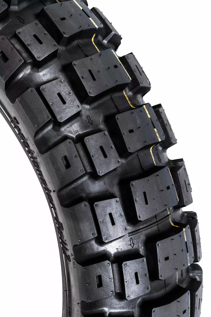 Basierend auf dem beliebten Tractionator-Abenteuer, aber mit aggressiveren Offroad-Traktion bei allen Wetterextremen. Offroad-Leistung mit angemessenen Manieren auf der Straße, getestet und Probenkonstruktion und Compound für Abenteuer und Rallye. Ohne die Notwendigkeit, den Reifendruck zwischen der Straße und auf der Straße zu ändern. Selbstverpackte und selbstharpenendes Profilmuster verleiht hervorragende Vorhersehbarkeit und Stromversorgung. Wälder und Feuerwade.