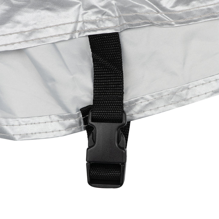 Entwickelt für den Einsatz im Freien und in Innenräumen, bietet sie Schutz gegen Regen und Staub. Polizeiliche Initiativen haben auch gezeigt, dass Motorradabdeckungen eine nützliche Diebstahlschutzmaßnahme sein können. Dies gilt insbesondere, wenn Sie den Bauchriemen anbringen und die Abdeckung in Kombination mit einem Kettenverschluss verwenden, der durch die vorgesehenen Schlösser geführt wird, um sowohl das Motorrad als auch die Abdeckung gleichzeitig zu sichern.