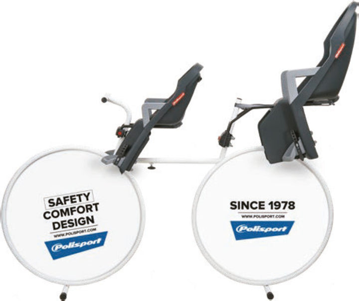 Auf diese Weise können Sie die verschiedenen Kindersitzmontagesysteme sowie die Mini -Sitze und deren Windschutzscheiben anzeigen. Das Set enthält einen Gepäckträger für die Kindersitze des Trägermontagesystems.