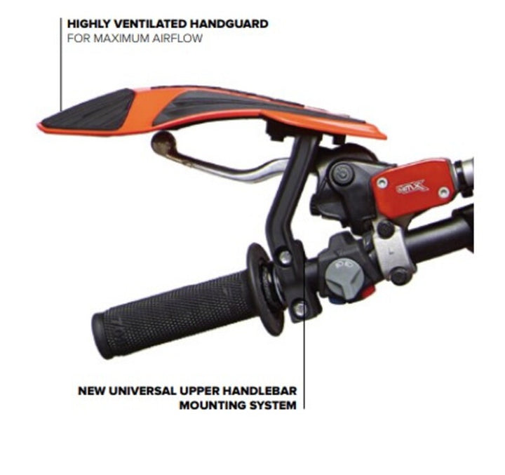 MX Air ist ein doppeltes materielles Handschutz, das ein neues universelles Montagesystem bietet. Diese neue Halterung wird zwischen Grip und Master -Zylinder zusammengesetzt und über den Lenker geht, um den größten Teil des Raums verfügbar zu machen und den Schutz zu maximieren.