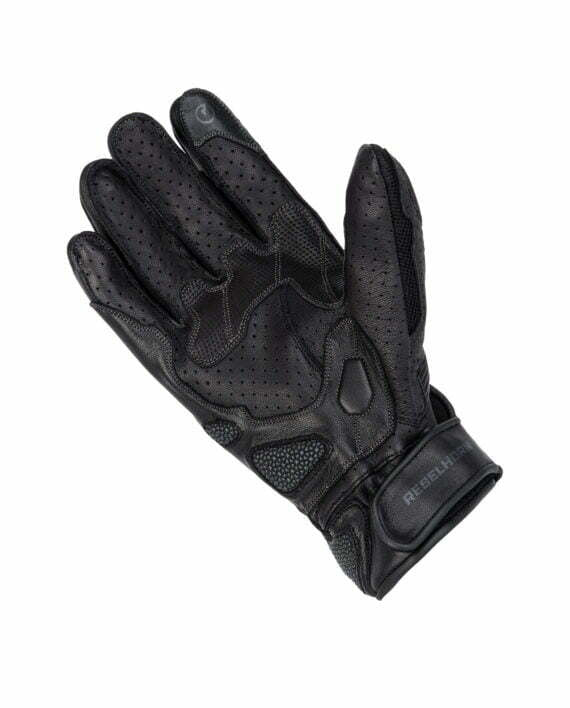 Perforiertes Leder an Fingern und der Unter- und Oberseite des Handschuhs