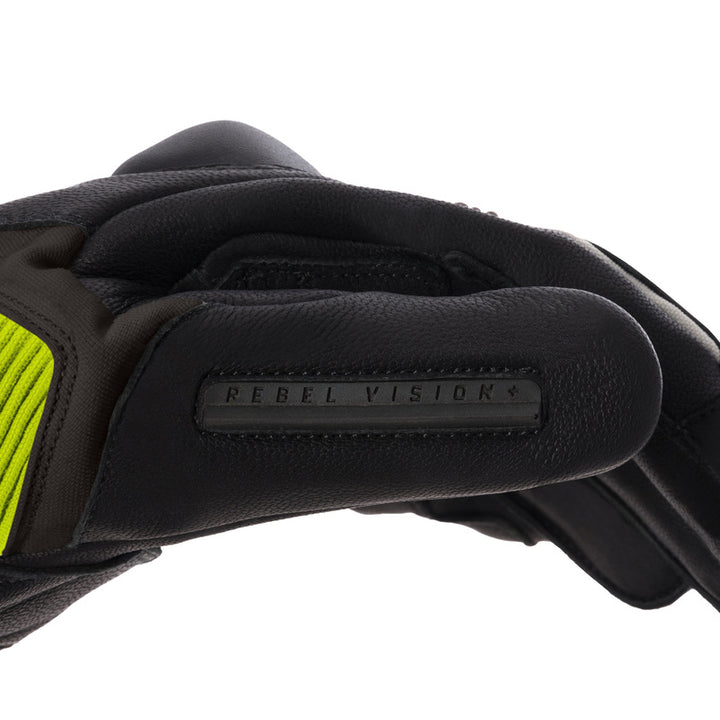 Die Rebelhorn Range Touren-Motorradhandschuhe verfügen über weiche SAS-TEC® Knöchelprotektoren und stoßdämpfende Einlagen in der Handfläche und am Bündchen. Die Unterseite des Handschuhs ist mit Superfabric®-Material verstärkt und zusätzlich mit einer Schicht Leder zum Schutz vor Abrieb. Der Wischer, der auf dem Daumen platziert ist, verbessert den Komfort beim Fahren im Regen. Die Rebelhorn Range-Handschuhe sind mit Touchscreens kompatibel.