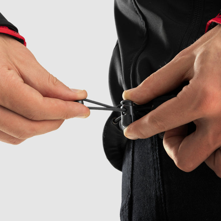 Die Jacke kann dank der Anpassungsoptionen perfekt an den Körper angepasst werden.