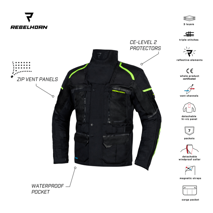 Rebelhorn Textile MC Jacke Cubby IV Schwarz /Grau /Grippe