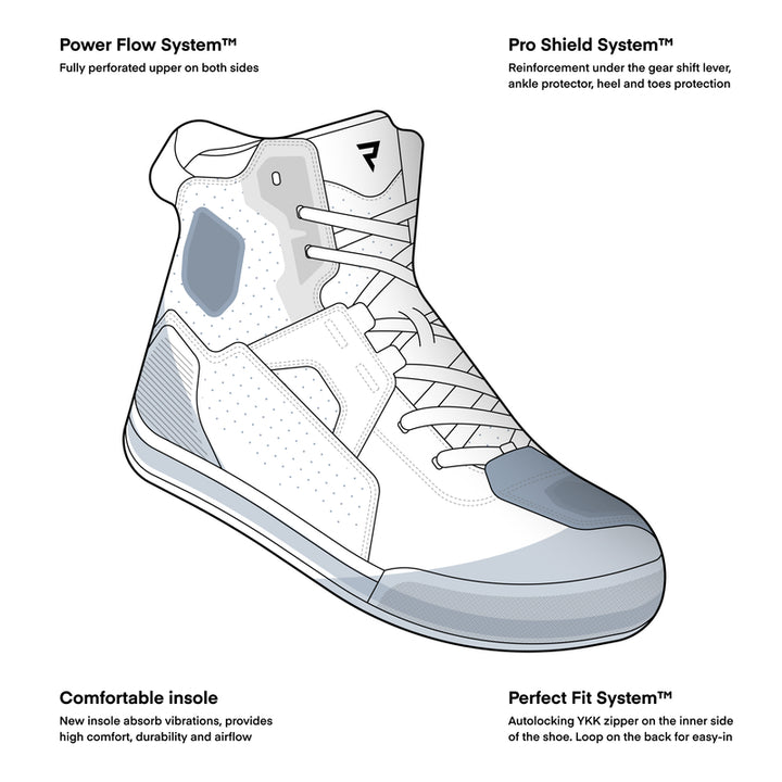 Rebelhorn Vandal II sind die perfekten Motorradschuhe für diejenigen, die einen stilvollen, komfortablen und sicheren Schuh für das tägliche Fahren der Stadt suchen. Mit seinem modernen Design und seiner funktionalen Konstruktion kombinieren diese Turnschuhe sowohl Mode als auch Sicherheit - perfekt für den städtischen Motorradfahrer.