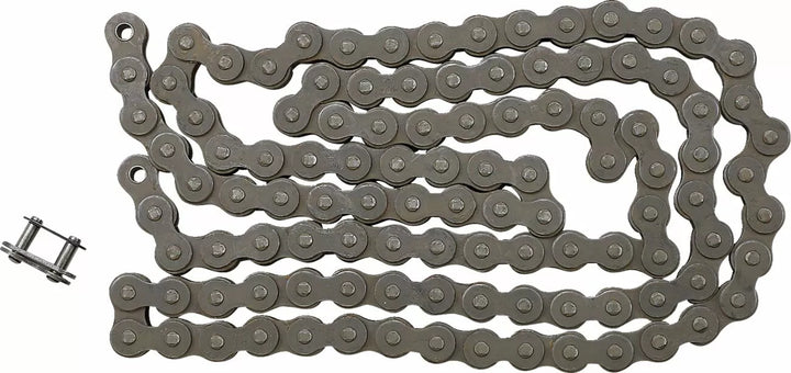Non-sealed Economical Chain for Heavy Duty Usage, Improved Strength Compare to Standard Chains, Manufactured From Carbon Alloy Steel, Heat-Treated and Shot-PEENED FOR MAXIMUM STRENGTH AND DURABILITY, APPLY LIFE COLD FOR LONG FOR LONG FOR LAGED SEAMS FOR LAGED SEAMS FOR LAGED SEAMS FOR LAMES TO LONG FOR LONG FOR LONG FOR LONG FOR LONG FOR LIFE LIFE LIFE AND SHEED LIFTS AND SHOULTERS OF THE MAX Pre-stretched for Superior Performance and Minimize Elongation During Die Lebensdauer der Kette, hervorragende Qualitäts- und Kostenleistung für Hochleistungs -Motorradanwendung, beinhaltet Clip Connecting Link