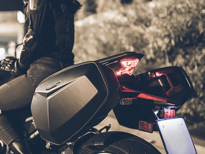 Satteltaschen mit Schlosssystem mit Schlüsseln zur SR -Anpassung, mit denen das Hauptfach kombiniert wird. Der Seitbeutelhalter SR für das Anpassungssystem bietet eine perfekte Integration der Ästhetik in das Motorrad und sorgt für eine starke und leuchtende Anpassung aus Polyamid und Glasfaser. Sie haben eine Kapazität von 15 Litern pro Beutel und können dank des roten Akzentstücks, das den Tragegriff integriert, leicht transportiert werden.