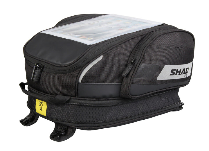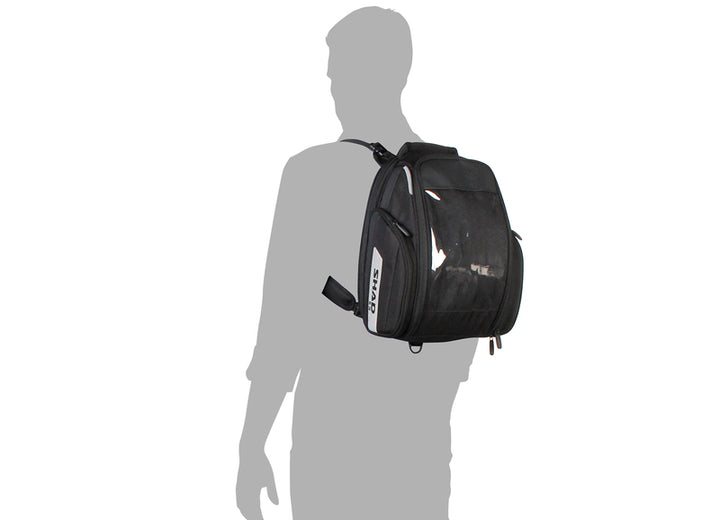 Erweiterbare Tanktasche mit reflektierenden Elementen zur Erhöhung der Sicherheit. Mit einem oberen Fach für Karten, Tablets, GPS, mit Touchscreen. Motorradbefestigung durch Riemen, die am Fahrradrahmen und Lenker befestigt sind (inklusive). Eigenschaften:• Reißverschluss Hauptfach, mit Schloss-Schlaufe für zusätzliche Sicherheit. • Reißverschluss mit widerstandsfähigen Ziehgriffen, geeignet für die Verwendung mit Handschuhen.• 2 Seitentaschen mit Reißverschluss.• Oberes Fach für Karten, Tablets, GPS, mit Touchscreen und Zugang von innen durch einen Reißverschluss.• Gepolsterter Tragegriff.• Umwandelbar in einen Rucksack, mit verstellbarem Riemen. • Wasserdichte Regenhülle.• Erweiterbar: erhöht das Volumen auf bis zu 20L. Platz für einen Jet-Helm.• Mehrere reflektierende Teile für Sicherheit.• Universelle Anpassung: 3 Befestigungssysteme: o INKLUSIVE: 3 verstellbare Riemen, die am Fahrradrahmen und Lenker befestigt sind. o OPTIONAL: 4 abnehmbare Magnete + Sicherheitsriemen zum Lenker (Ref. X1SL11) o OPTIONAL: Universeller Tankboden (Ref. X1SL90)• Kabelauslass zum Durchführen des USB-Ladegeräts.• ZUBEHÖR: USB-Ladegerät (Ref. X1SB95). Farbe: Schwarz Tiefe (cm): 40 Höhe (cm): 18 Helmkapazität: 1,0 Gepäckkapazität (L): 15/20L Gepäcktyp: Weich Material: Textil Wetterfest: Wasserdicht Breite (cm): 30.0