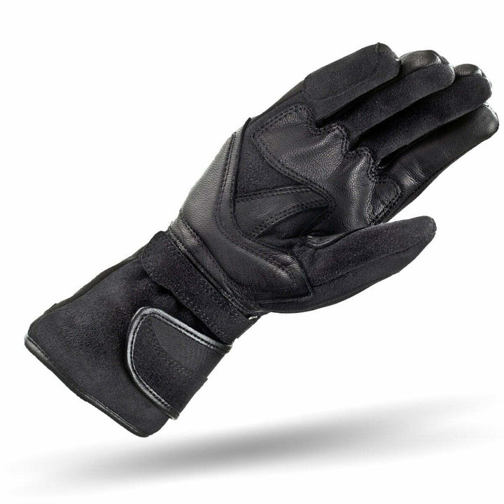 Der hauptsächliche synthetische Schutz ist unter dem Stoff verborgen, und die Innenseite des Handschuhs ist mit einem schützenden Handgelenkspaneel ausgestattet, das mit natürlichem Leder bedeckt und mit einer zusätzlichen Verstärkungsschicht an der Seite der Hand versehen ist.