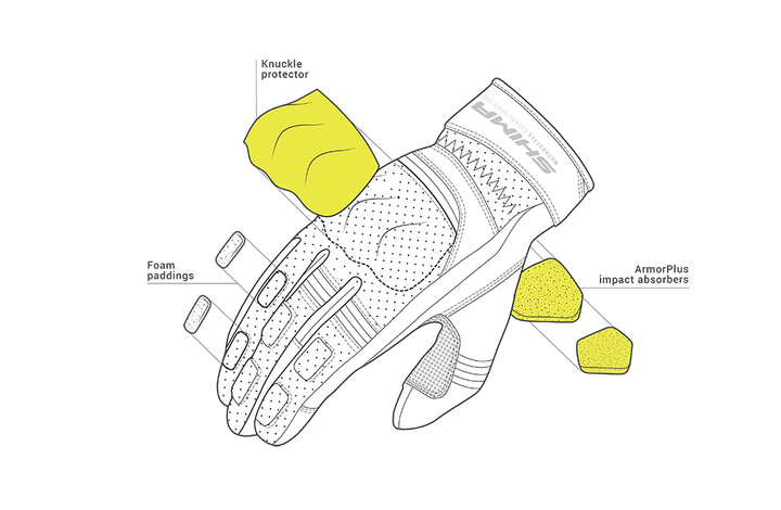 - Schutz: Ausgestattet mit Polyurethan-Knöchelschutz und stoßdämpfenden Einsätzen an den Fingern. Verstärkte Einsätze und zusätzliches Leder an der Handseite für besseren Schutz.