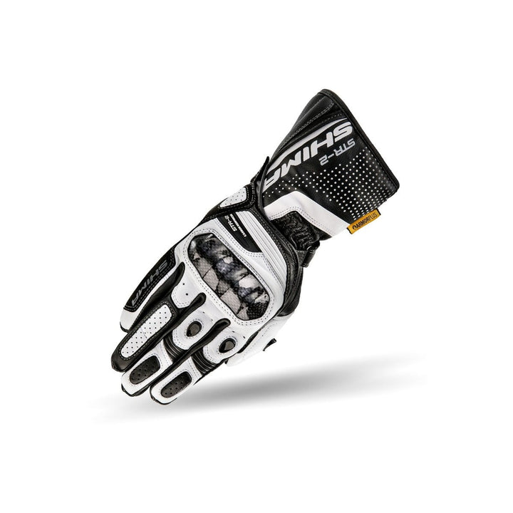Shima Str-2 Sport- und Stadtmotorradhandschuhe, die mit Kohlefaser im Knöchelbereich verstärkt sind, erfüllt die höchsten Sicherheitsstandards. Der sportliche Stil wird von Slider auf den Zehen und ausdrucksstarken Farben hervorgehoben, in denen sie auftreten.
