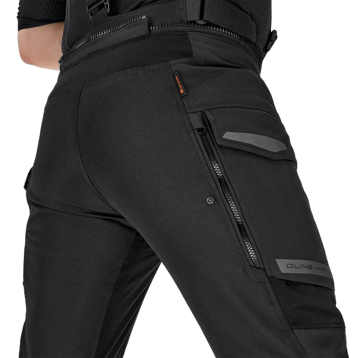 Unabhängig davon, ob Sie die klassische Länge oder eine kürzere Variante bevorzugen, können Sie Ihre Hose in Ihrem Knie, Beinverschluss und Hüfte mit Klettbändern für einen einstellen eng und komfortable Passform. Die dehnbare Taille lässt sie auch nach vielen Stunden im Sattel perfekt sitzen. Und mit 360 ° Reißverschluss und kurzem Verbindungs -Reißverschluss verbinden Sie sie schnell mit Ihrem Dünenjacke Und holen Sie sich ein komplettes Touring -Outfit.