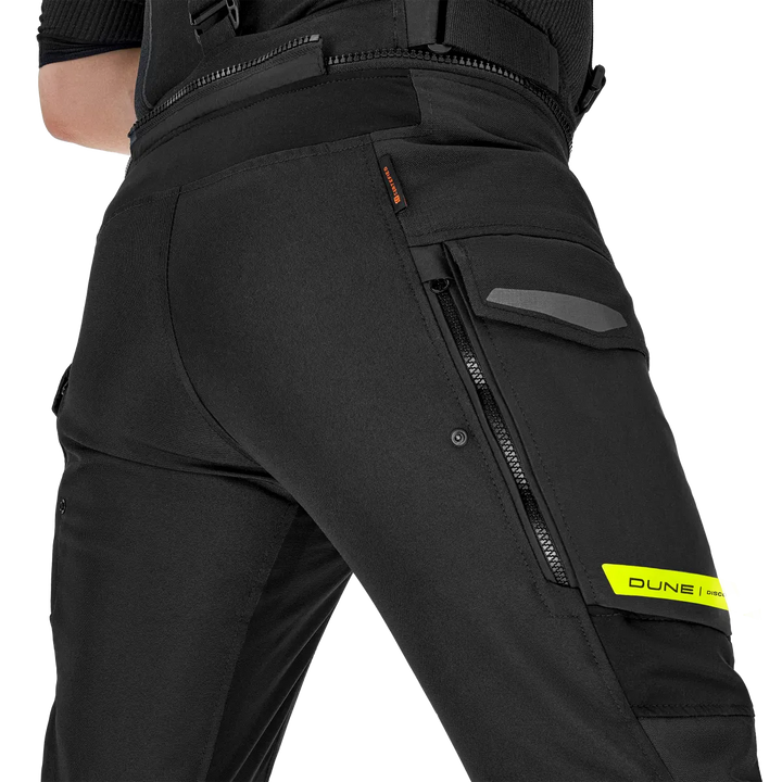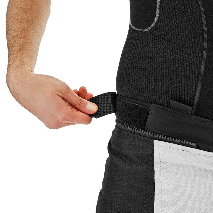 Unabhängig davon, ob Sie die klassische Länge oder eine kürzere Variante bevorzugen, können Sie Ihre Hose in Ihrem Knie, Beinverschluss und Hüfte mit Klettbändern für einen einstellen eng und komfortable Passform. Die dehnbare Taille lässt sie auch nach vielen Stunden im Sattel perfekt sitzen. Und mit 360 ° Reißverschluss und kurzem Verbindungs -Reißverschluss verbinden Sie sie schnell mit Ihrem Dünenjacke Und holen Sie sich ein komplettes Touring -Outfit.
