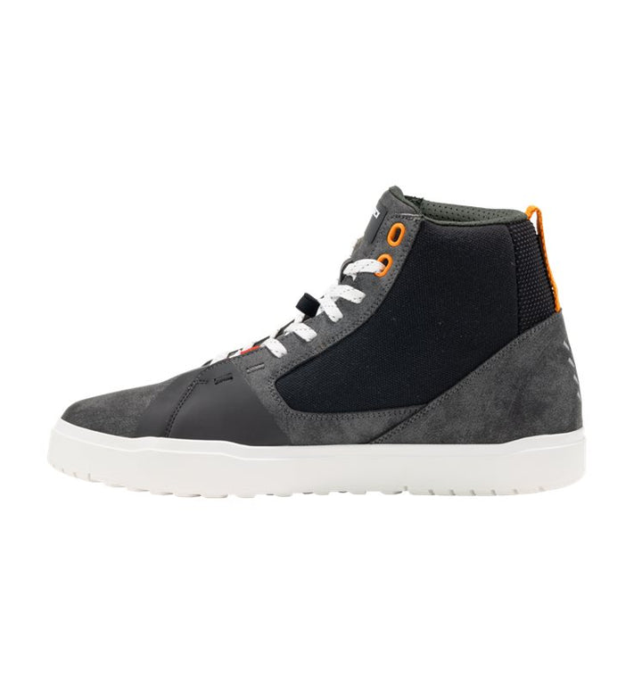 Mit D3O®-Schutz um den Knöchel, verstärktem Fersen- und Zehenbereich sowie zusätzlichem Schaltknaufschutz sind deine Füße für unerwartete Situationen gerüstet. Während viele Motorradschuhe klobig und steif wirken, bietet Arx ein geschmeidiges Gehgefühl, das dich fast vergessen lässt, dass du Schutzschuhe trägst. Eine Vibram®-Sohle sorgt für stabilen Halt sowohl auf Asphalt als auch auf Kies, und reflektierende Details an der Ferse erhöhen die Sichtbarkeit, wenn das Licht schwach wird.