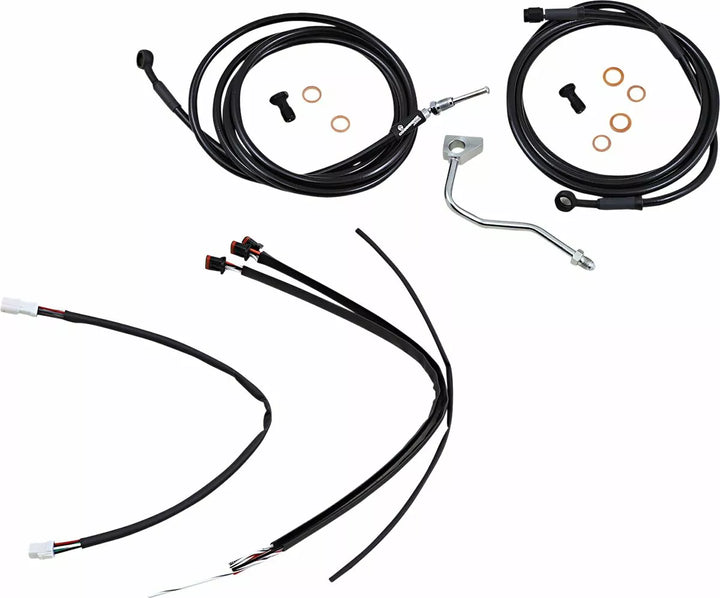 Komplette Installationskit für stämmige Affenbügel, Kit enthält eine verlängerte Bremsgrenze (sofern nicht angegeben), erweiterte Kupplungskabel/Kupplungslinie, erweiterte Gas-/Leerlaufkabel und alle notwendigen Kabelverdrahtung, Bremsbremsen-Innenlinien, enthalten, enthalten, Felemudd, Außengeflügel, Kommoden-Kits-Stammdrossel-Drossel.