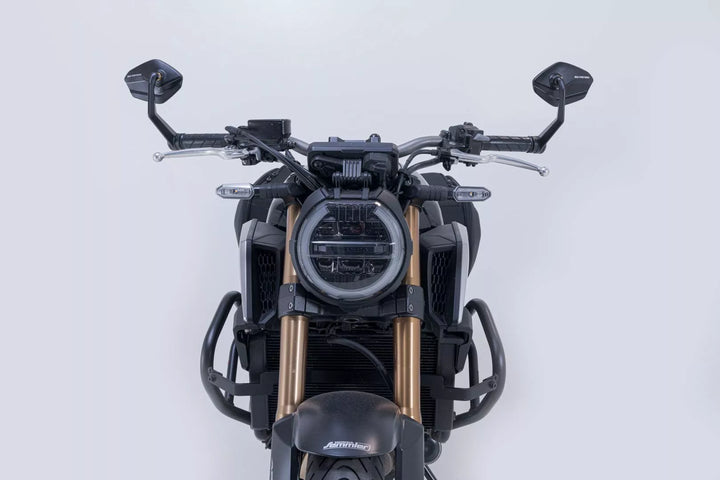 Die Spiegel bestehen aus geschmiedeten, gemahlenen und schwarzen, anodierten Aluminium und verfügen über eingravierte Logo -Details. So verleihen sie Ihrem Lenker eine robuste, aber elegante Note. Der aerodynamisch gestaltete Wrap-Around-Arm und das zeitlose, einfache Design der Spiegel mischen sich perfekt auf Eiter moderne nackte Sportbikes oder moderne Retro-Stil-Scrambler oder Cafä RACF. und vielseitige Anpassung Ihres Sichtfeldes, damit Sie immer einen klaren Blick darauf haben, was hinter Ihnen passiert. Zusammen mit den in den Sets enthaltenen Befestigungsteilen können sie mit einer perfekten Passform an Ihr Motorrad angepasst werden und dank sorgfältig ausgewählter und koordinierter Oberflächen ein hoher Qualität und ein harmonisches Erscheinungsbild gewährleisten. Das Motorrad wird auf dem Parkplatz mit diesen exklusiven Spiegeln anziehen und Ihre Passagiere immer sicher auf der Straße im Auge behalten., Hergestellt aus hochwertigem Forg- und Black-Anodinium. Gewährleistet eine genaue Ausrichtung des Sehfeldfeldes. Spiegel Armlänge: 157 mm. Lieferumfang: 1 x Spiegel -Set Sport, 1 x Befestigungsanweisungen und Montagematerial.