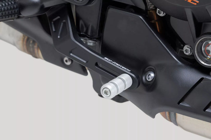 Bike-spezifisches Aluminiumlebensarm, robuste Konstruktion, perfekte Passform: CNC-Milz, Hart-Coat ᆴ beschichtetes Aluminium, qualitativ hochwertig für maximale Stabilität, Behandlungsstraße, die standardmäßig in der Lieferung enthalten ist. Sliping., Plattform verfügt über verschiedene verstellbare Positionen, Abenteuer-Profile für Offroad-Touren (separat verkauft), 1 x Bremspedal, Montageanweisungen, Montagematerial