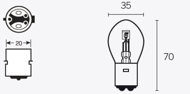 V PARTS Ersatzlampen sind essenziell für Ihre Sicherheit, um zu sehen und gesehen zu werden; egal ob auf Ihrem Motorrad, Quad oder Roller. B35 Typ Lampen 12v - 35/35w Passform BA20D /732715,17 Lampensockel: BA20d Homologation: Homologiert & Homologué Stärke: 35/35W Spannung: 12V
