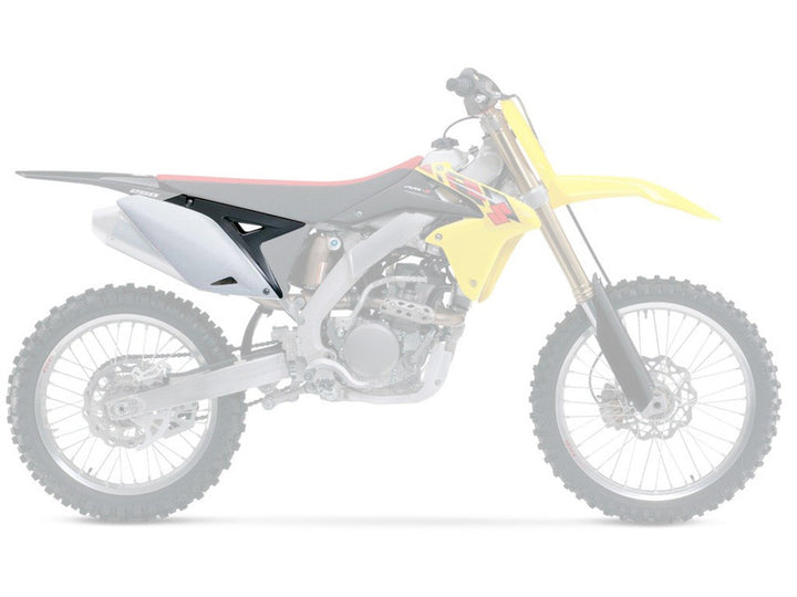Die UFO-Firma ist in der Offroad-Welt besser bekannt, und ihre Produkte sind dafür ausgelegt, rauer Behandlung im Geländeeinsatz standzuhalten.Seitenpaneele UFOOriginal Suzuki Farbe 2013Oben in SchwarzUnten in Weiß