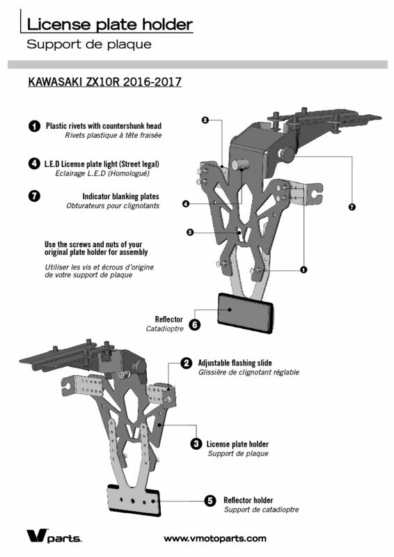 Die V PARTS Nummernschildhalter werden in Frankreich hergestellt. Unauffällig und perfekt verarbeitet, sind sie speziell für die angehängte Fahrrad-Anwendungsliste entwickelt. 2 mm dünn, aber stabiler Stahl Nummernschildhalter Schwarze Epoxidbeschichtung CNC gefertigt – Laserschnitt: präzise Verarbeitung Löcher zur Befestigung des Nummernschilds, der Blinker und der Nummernschildbeleuchtung Hergestellt in Frankreich Inhalt: Straßenverkehrszulassungsnummernschildbeleuchtung, EU-zertifiziert Verstellbare Reflektorplatte Reflektor, EU-zertifiziert Weitere Informationen: Optimierter und diskreter Kabeldurchgang Schnelle & einfache Montage Verstellbare Blinkerhalterungen Passt für EU-Nummernschilder Abstand der Blinkerlichter: 170 bis 220 mm Farbe: Schwarz Homologation: CE homologiert Material: Stahl