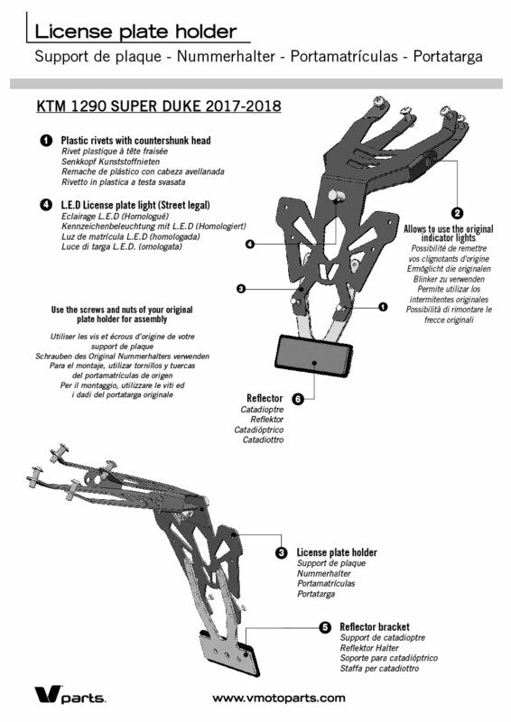 V PARTS Kennzeichenhalter Schwarz KTM 1290 Super Duke R C8-SPM006