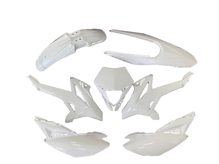 OEM-Kit für Kotflügel und Abdeckung, bestehend aus 7 Kunststoffschalen. Schwarz oder Weiß. 2 vordere Seitenkotflügel, 2 hintere Seitenkotflügel, 1 vorderer Radkotflügel, 1 hinterer Radkotflügel, 1 Frontplatte Farbe: Weiß