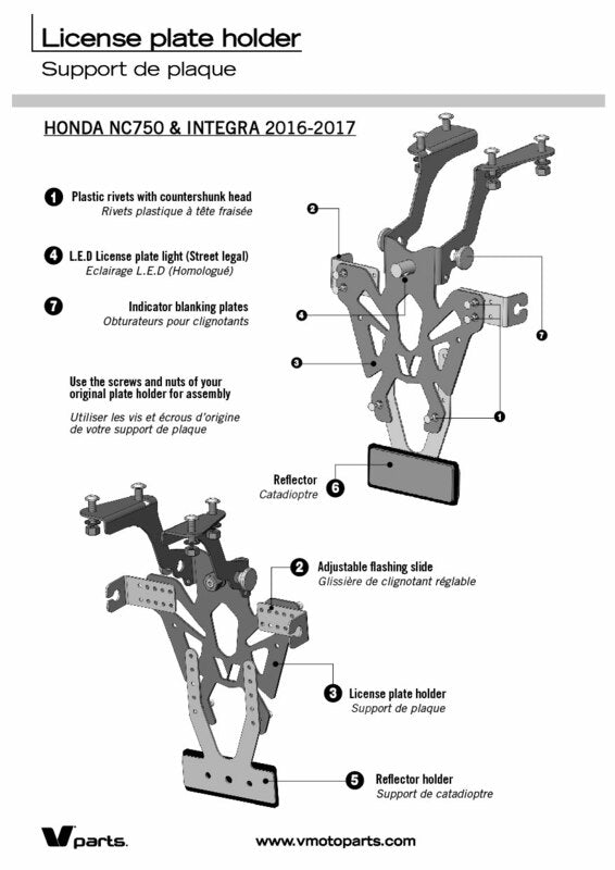 V PARTS Kennzeichenhalter Schwarz Honda NC750X C8-SPH006