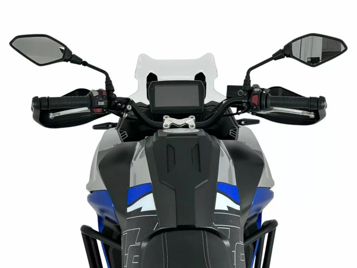 Nach den strengsten Standards in Bezug auf Sicherheit und Respekt des Know-how, das einen maximalen Widerstand und Transparenz garantiert. Die aerodynamischen Linien dieser Windschutzscheibe wurden ausführlich untersucht, um luftfrei auf ein Minimum zu reduzieren. Diese Windschutzscheibe verleiht dem Fahrrad ein noch faszinierenderes Aussehen.