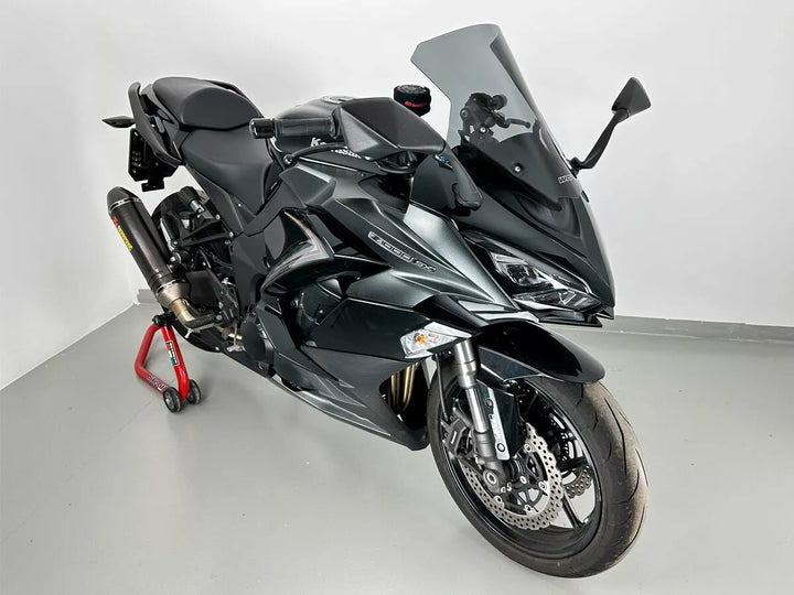 Windschutzscheibe mit hochwertigem PMMA -Plexiglass. Die nervigen Turbulenzen auf den Schultern und dem Helm werden beseitigt. Der größere Schutz des Bildschirms passt perfekt zur Linie des Fahrrads und verleiht ihm eine noch mehr App.