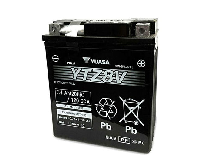 YUASA YTZ8V ist eine hochleistungs AGM-Batterie, werkseitig aktiviert und sofort einsatzbereit. Sie ist für Motorräder, Roller, Quads und andere Fahrzeuge konzipiert, die zuverlässige Startkraft, lange Lebensdauer und minimalen Wartungsaufwand erfordern.