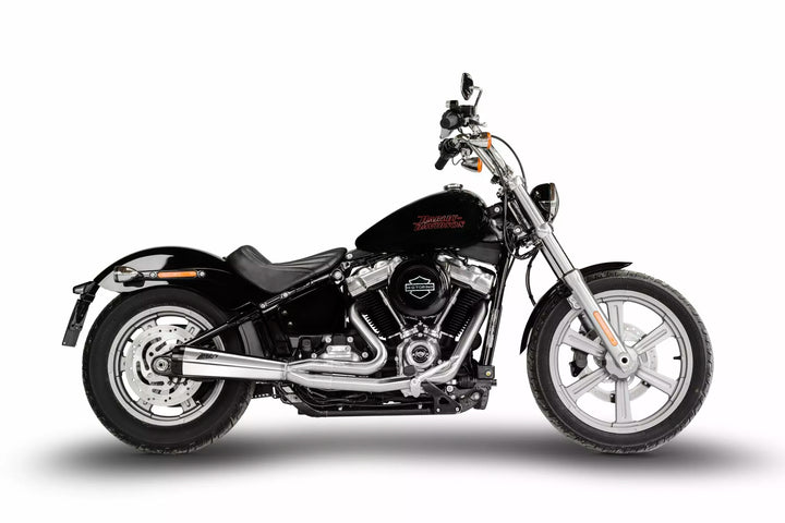 Zard Auspuff Full Kit 2: 1 Für Harley-Davidson Softails ist das 2-in 1-Full-Kit ein komplettes Abgabesystem aus AISI 304 Edelstahl, bestehend aus Header, einem kurzen Kegelschlug und einer schwarzen anodierten Aluminum, die die Euro 4/5-Version erhältlich ist. Fuß der Euro 4/5 Homologierte Version im Vergleich zum OEM -Auspuffanlagen) mit einer Real Inc. -Version und +2,1 HP für die homologierte Version OEM -Abgasanlage)