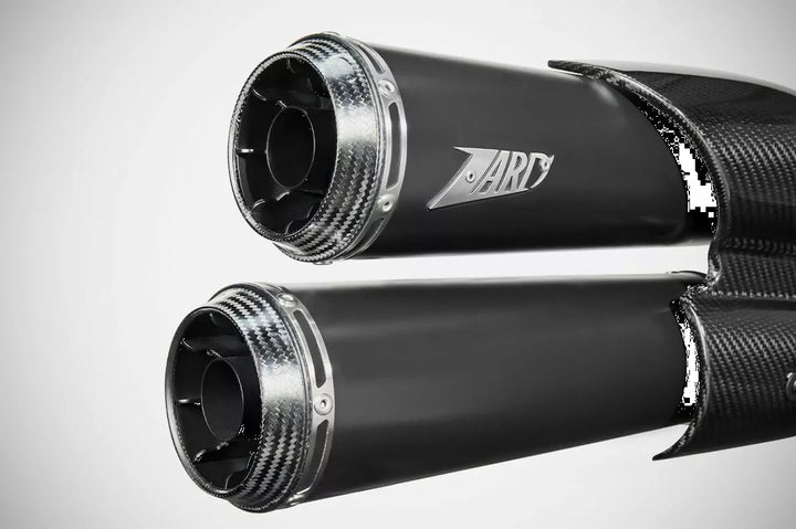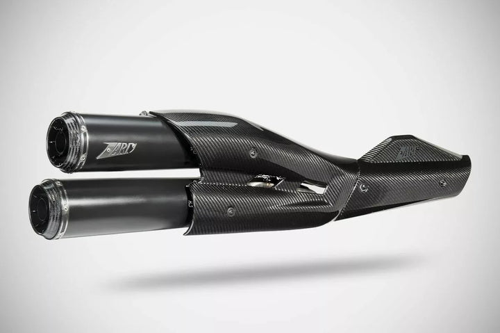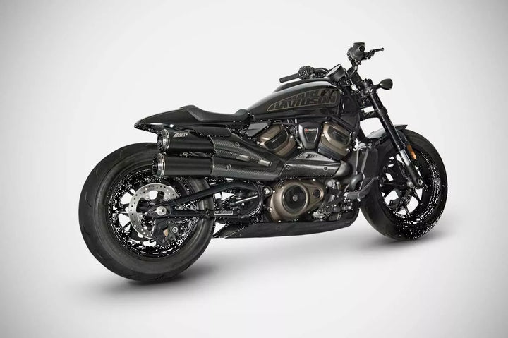 Zard Top Gun Slip-on 2: 2 Auspuffsystem E5, Zard Top Gun Abgase für den Harley-Davidson ᆴ Sportster S 1250 wurde entwickelt, um das Design dieses modernen Power Cruisers eine neue Identität zu verleihen. Lasermotor. Der Zard モ gt ヤ Auspuff für die Harley-Vids 1250 verfügt über den entsprechenden DB-Guy. Um dieses Auspuffanlagen zu vervollständigen, hat Zard ein exklusives zweiteiliges Kohlefaser-Wärme-Schild mit zwei Partien entworfen und hergestellt, das die gesamte Plastikeinheit des ursprünglichen Modells ersetzt und sich perfekt in das Bike-Design integriert, das Ergebnis von EG.